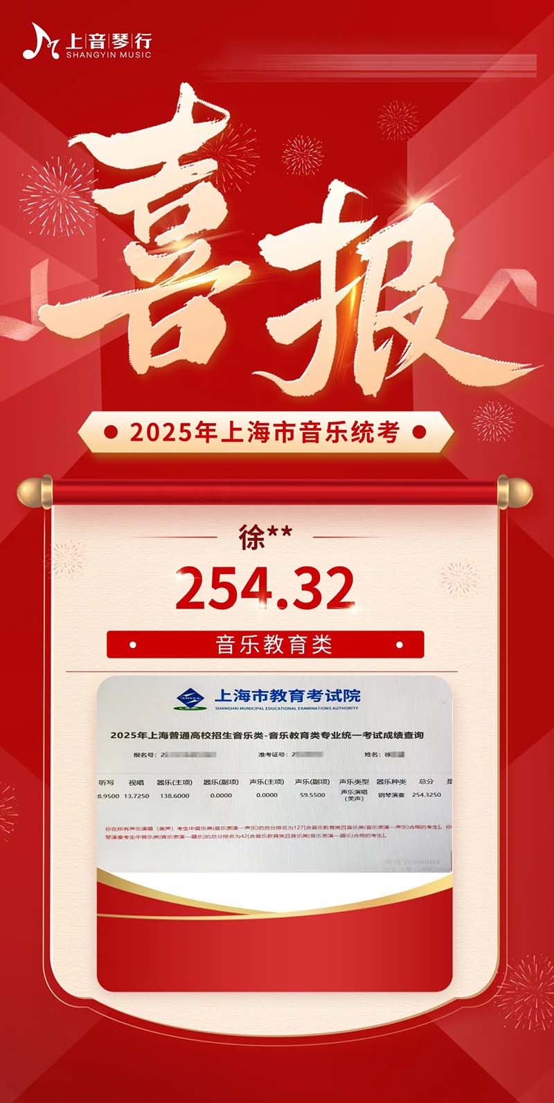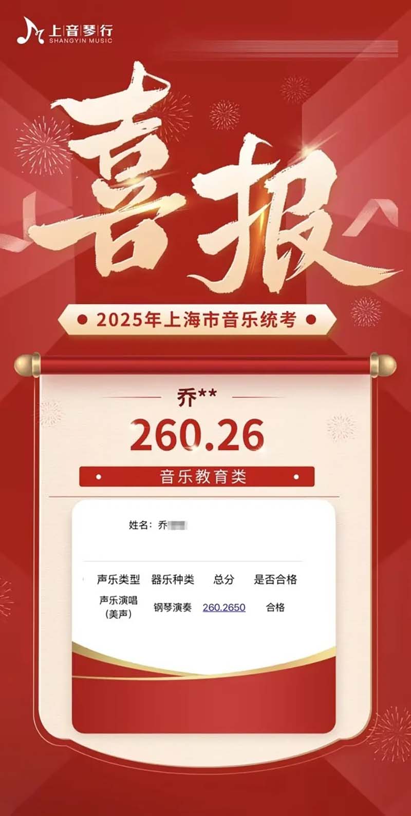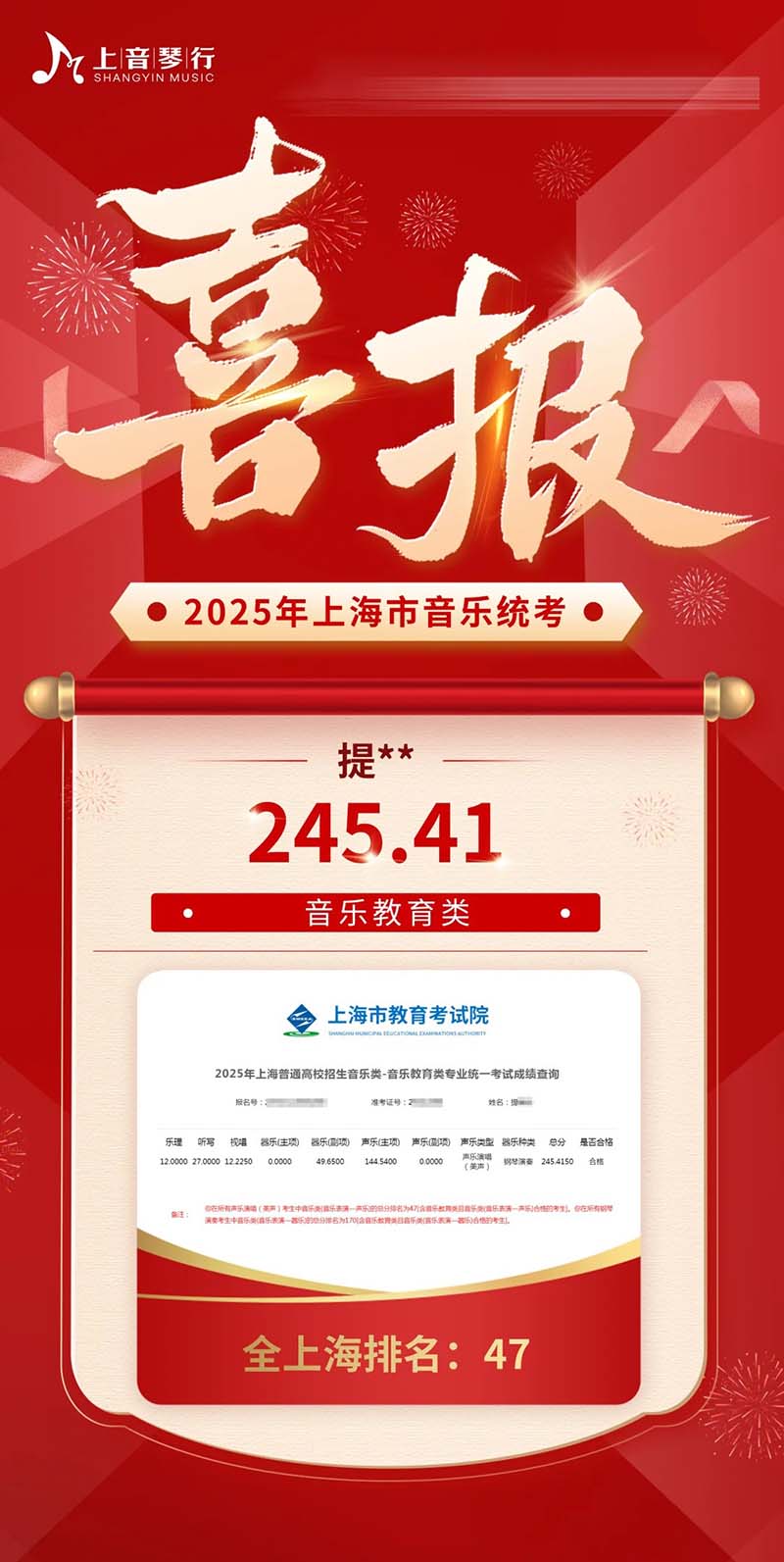 2025年上音琴行艺考培训中心音乐统考再创佳绩‼️