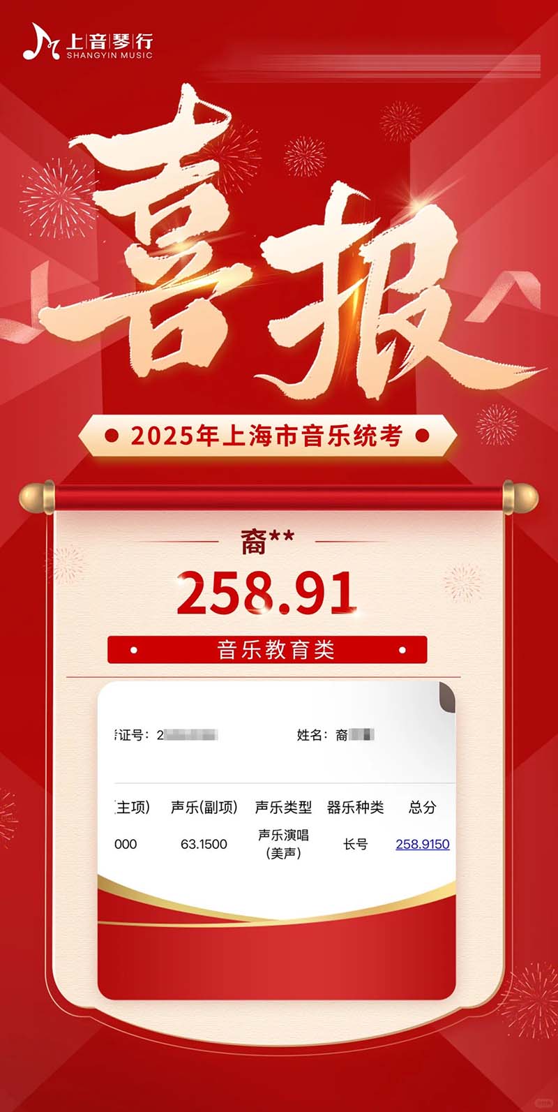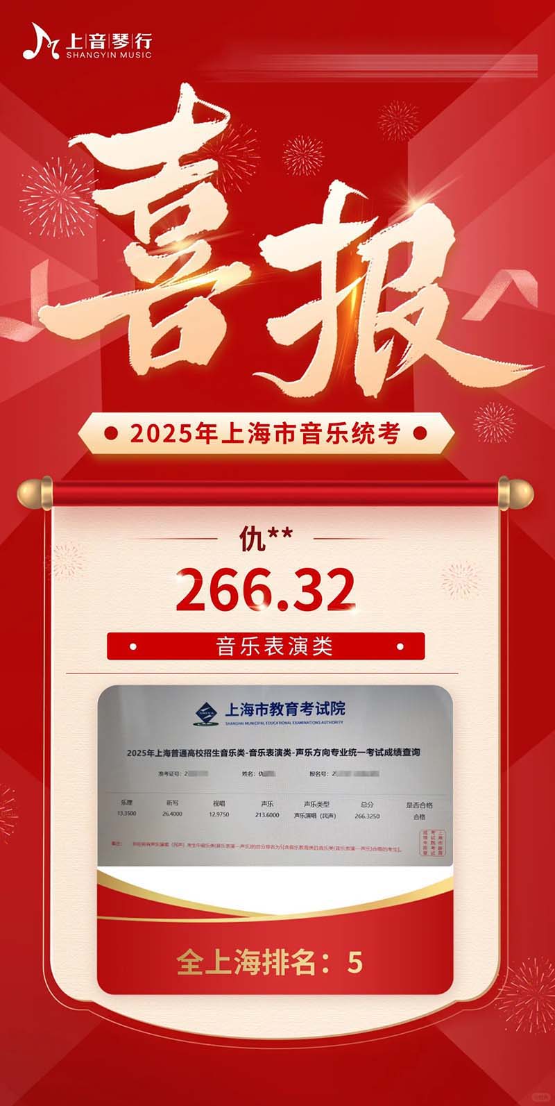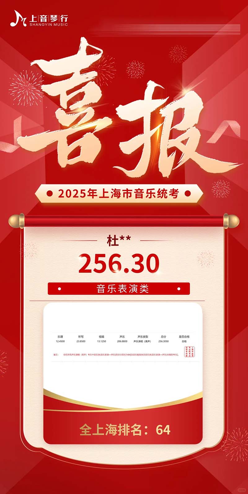 2025年上音琴行艺考培训中心音乐统考再创佳绩‼️